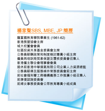 回港後,楊先生把所學貢獻於特殊教育課程編寫、師資訓練、確認測試和支援服務等,受惠的學校和學生很多,影響到教育署的決策官員也對特殊教育加深認識,逐漸完善服務內容。英國特殊教育學校有一本書叫Key Word of Literacy,集合英文常用的幾百個字,老師就用這些字寫課本。學美術的楊先生也為常用中文字編課程圖卡和讀本。至於學習嚴重弱能的學生,最重要不是教認字,而是教他們認識符號,認識危險,例如「停止」, 這些都是特殊教育的課程設計。楊先生特別分享留英時,20人一小班帶學習困難學生學坐地鐵,認識倫敦。到倫敦之前給孩子做很多預備功夫,回來之後他們要學習表達寫出那個經歷,開闊孩子的視野。因為照顧孩子的資源問題,這些60年代的方法,今天的香港也不容易做到。
