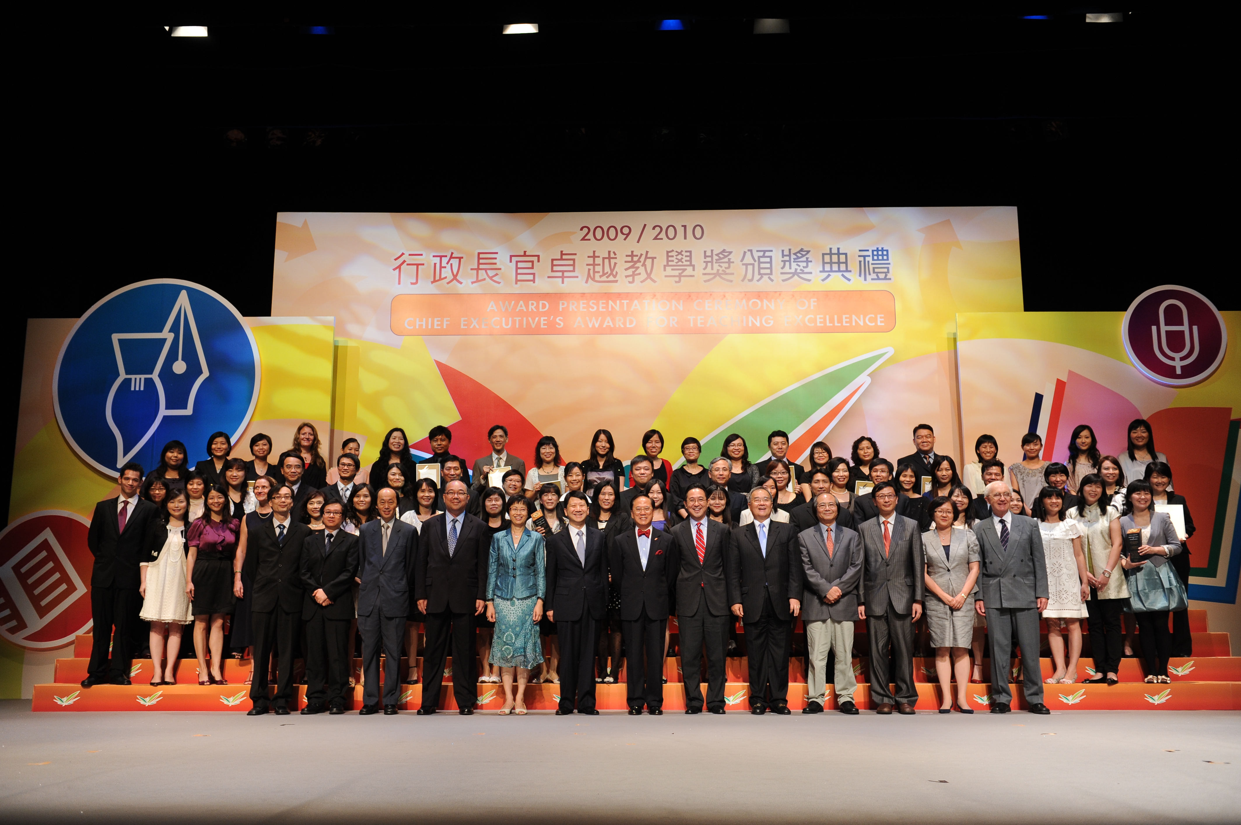 新一屆「行政長官卓越教學獎(2009/2010)」頒獎典禮,旨在表揚61位在「中國語文教育學習領域」及「英國語文教育學習領域」中教學卓越的教師,其中43位得獎者更是我們的校友,當中22位獲頒行政長官卓越教學獎,另外21位獲頒嘉許狀,著實令人鼓舞!