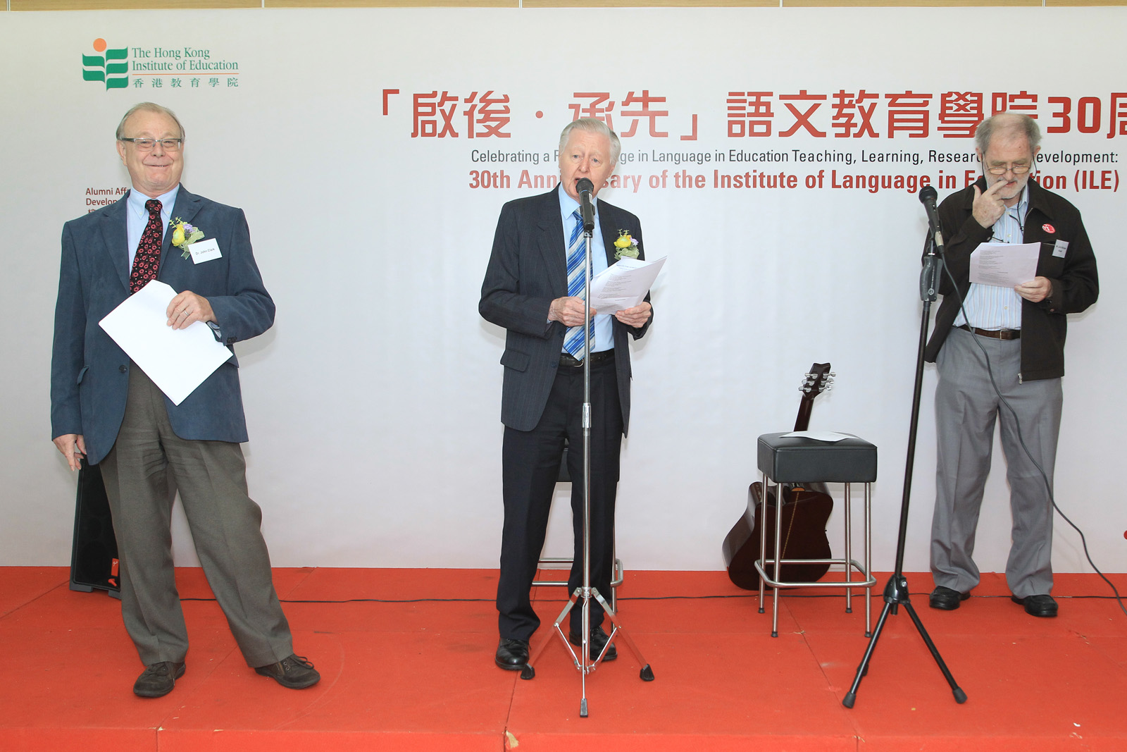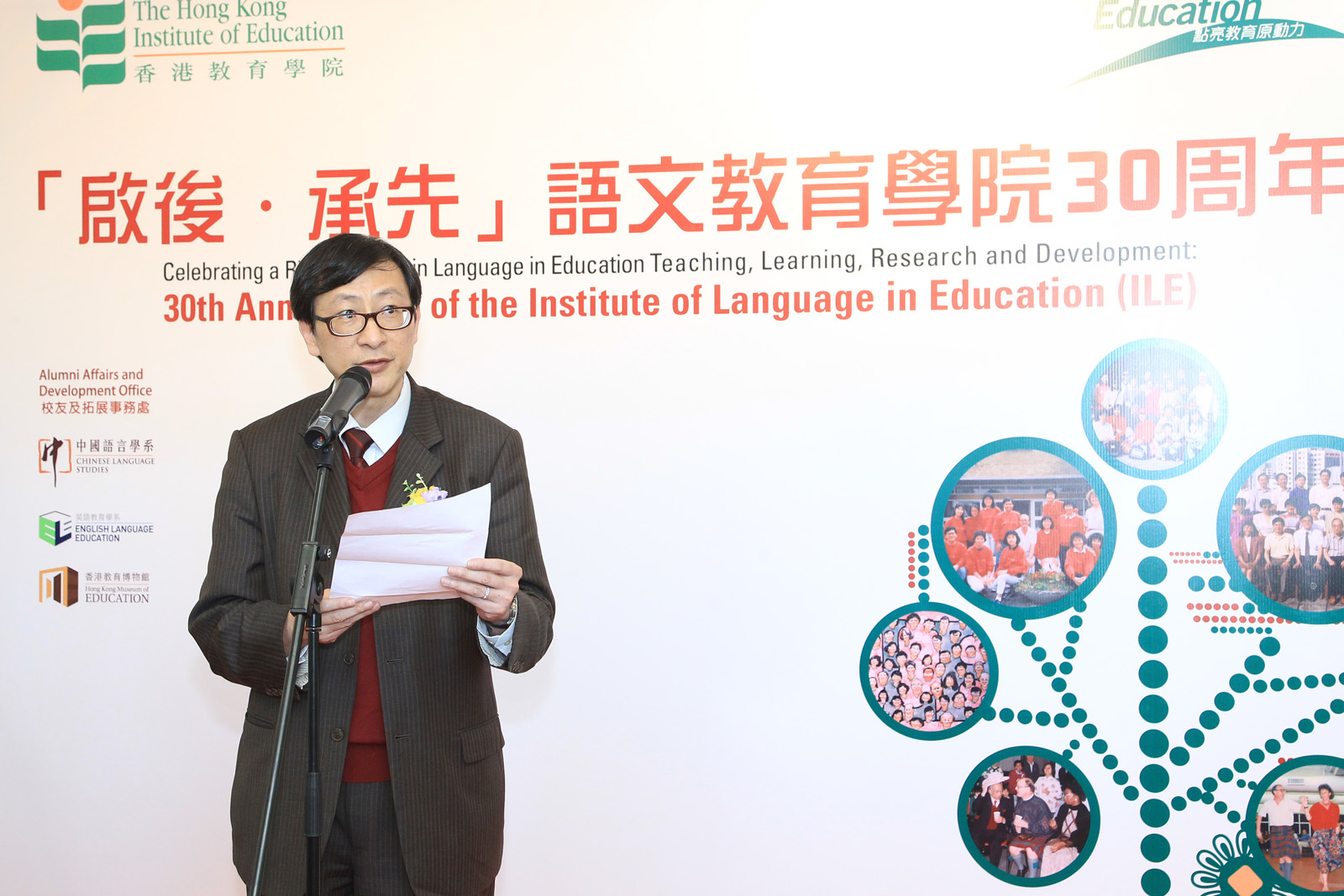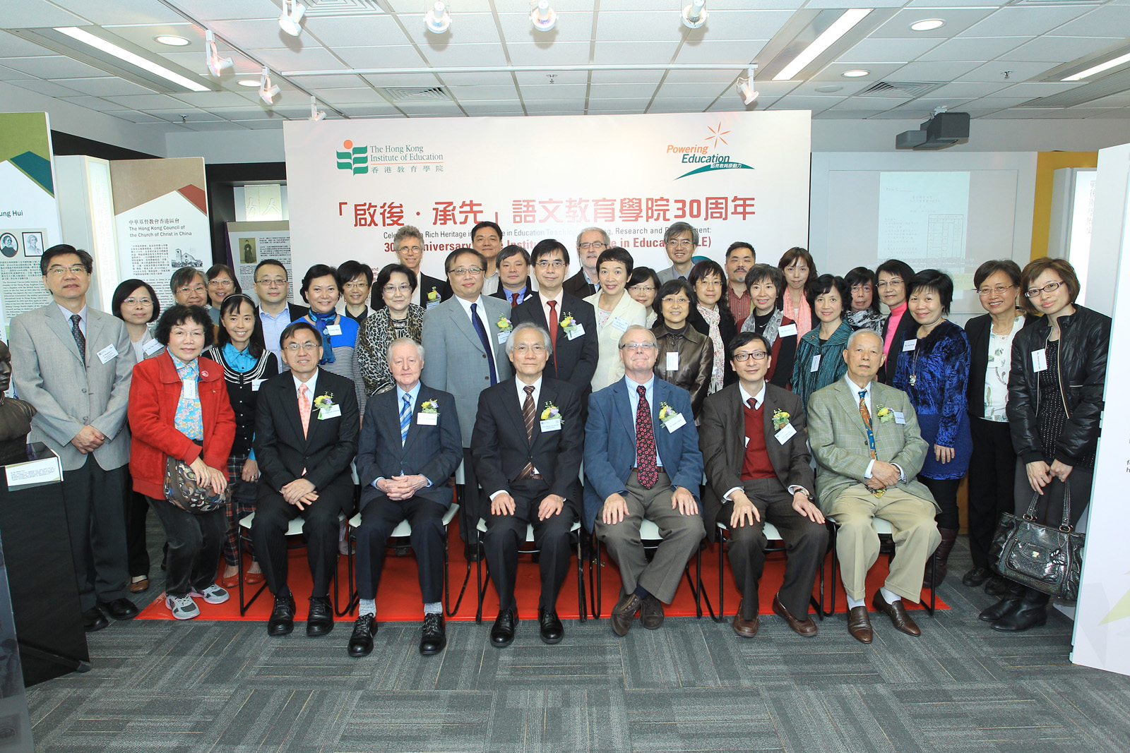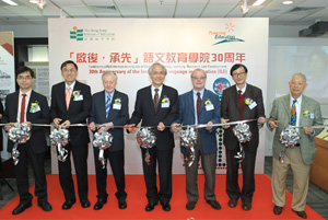 慶祝活動及展覽揭幕儀式於香港教育博物館舉行,由教院署理校長鄭燕祥教授及副校長(學術)李子建教授聯同前語文教育學院院長白敬理博士(Dr Verner Bickley)及簡閎達博士(Dr John Clark)、副院長(中文)陳煒良博士及何國祥博士,及教院人文學院院長陳國球教授主禮。