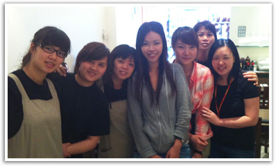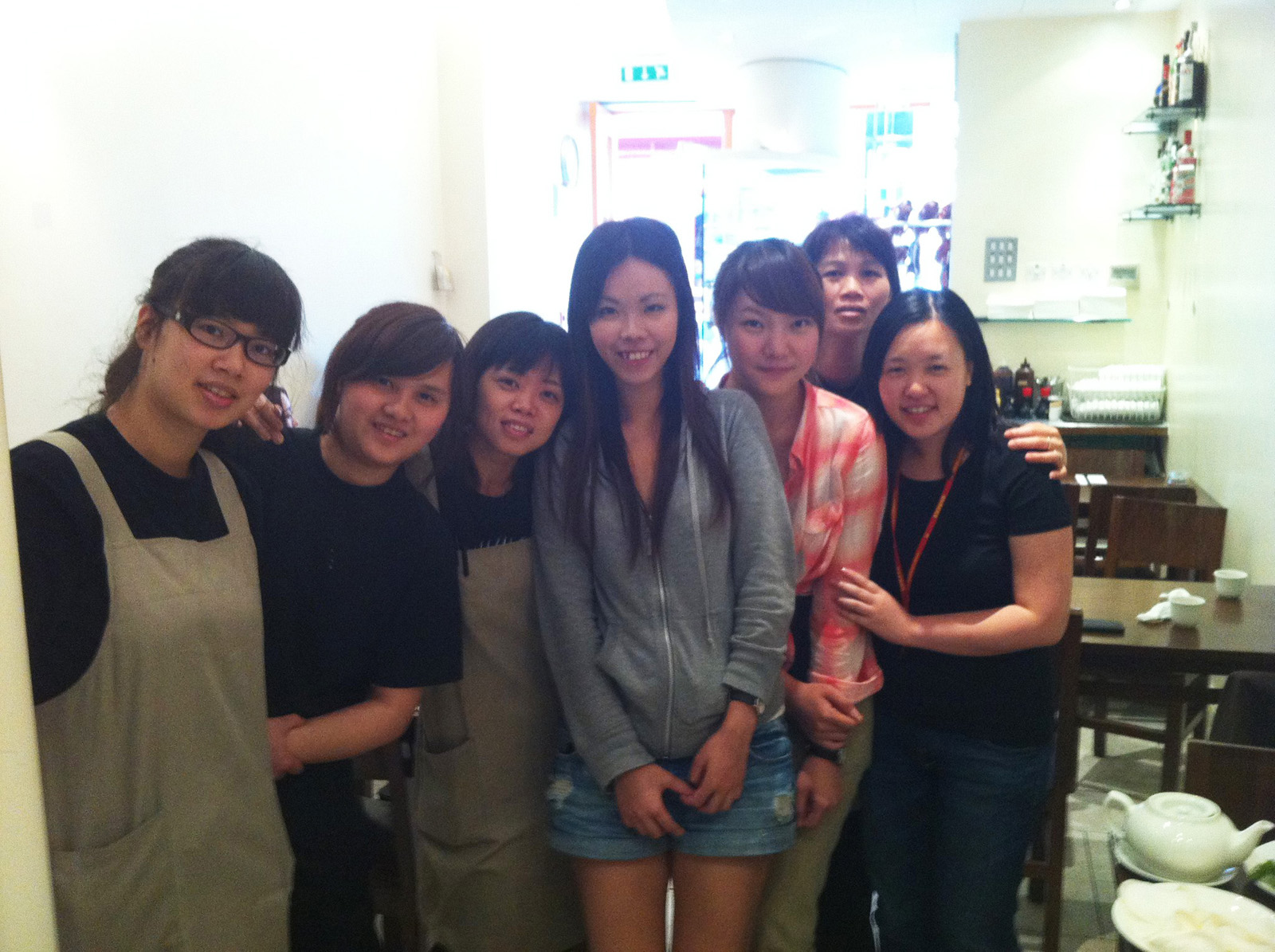 Tiffany(右三)與同事Kelly(右一)、實習生Natalie(中)和唐人街大排檔茶餐廳的員工合照