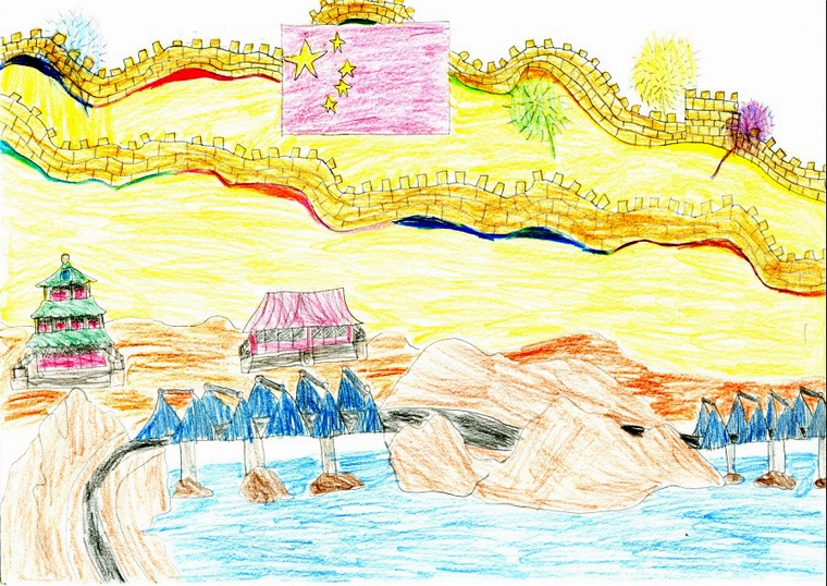----這幅畫畫了一些中國著名建築物,又有節日的喜慶氣氛。