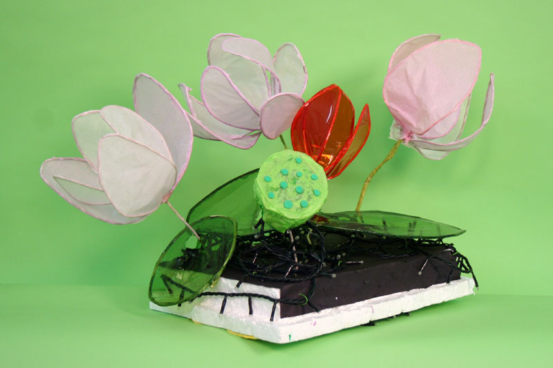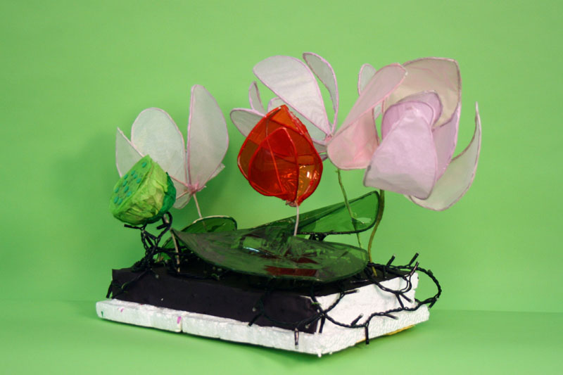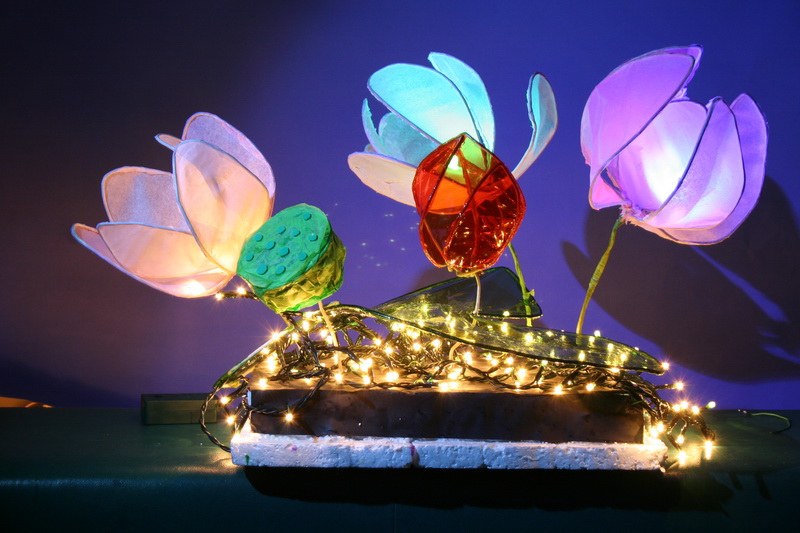 | 所用物料: | 藤芯 、馬拉紙、玻璃紙、手工紙、報紙、發泡膠、紙包鐵線、泡膠綿、閃燈、LED變色燈 |