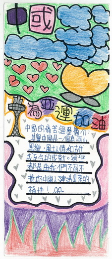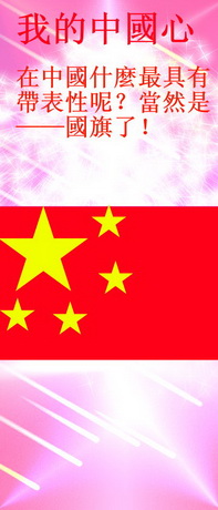 §Ú¦b¤@Ӥߤº¼g¤W¡u·R¡v¦r¬O¦]¬°§Ú«Ü·R¤¤°ê¡C §Ú¦b³oùØ¥[¤F¬õ¦â¡A¬O°êºXªºÃC¦â¡A¥Nªí¤¤°ê ¤H¥Á¹ï°ê®aªº·R¡C |