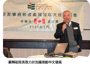 «e¬f®v°|ªøÄ¬½÷¯ª©ó¤K¤E¦~²¾¥Á¥[°ê«á¡AP¤O¨ó§U±À°Ê¤¤¤å±Ð¾Ç¡C¥L¦Ò¼{¨ì·ÅôµØ¤¤¤å¾Ç®Õ¤ô·Ç°Ñ®t¡A¯Ê¥F¤@®M¤Á¦X·í¦a¨Ï¥Îªº¤¤¤å½Òµ{¡A«K²Õ´¤@¸s¦³§Ó¤§¤h¡A¥]¬A¤£¤Ö¨Ó¦Û»´ä®v°V¬ÉªºªB¤Í¡Aªá¤F¤T¦~®É¶¡¡A©ó¤G¹s¹s¤G¦~½s¦¨¤@®M¥H³æ¤¸µ²¦X¤è¦¡¼g¦¨¡m¤¤¤å½Òµ{«ØÄ³¡n¡A«ØÄ³¥H¤£¦PÃD§÷¡A¤À¤CÓ¶¥¬q¡B¨C¶¥¬q¤Q¤Kӳ椸±Ð±Â¤¤¤å¡C©Ò¦³µü·J§¡¼Ð¦³°ê»yª`µ©Mº~»y«÷µ¡A¨Ã¤Þ¤JÁ³±Û¶i«×¤¸¯À¡A¥O¾Ç²ß§ó¨ã¼u©Ê¡A¨Ï¦Ñ®v¦b±Ð±Â¤£¦P¦~ÄÖ¡B¤£¦Pµ{«×¡B¤£¦Pì©~Äyªº¦P¾Ç®É³£¯à±Ä¥Î¡C¤G¹s¹s¤@¦~¥[®³¤jµØ¸Ç»y¨¥¤å¤Æ¤¤¤ß¦b¥[°ê±Ð¨|³¡¤Î¤¤µØ¤H¥Á¦@©M°ê°ê°È°|¹´°È¿ì¤½«ÇÃÙ§U¤U¡A¦b¦hÛ¦h¥D¿ì¡u2001¥[®³¤jµØ¤å±Ð¨|·|ij¡v¡CĬ°|ªø¥Nªí¨õ´µ¬Ù¤¤¤å¾Ç®ÕÁp·|¦V¥þ¥[µØ¤H¾Ç®Õ±À¤¶¦¹®M·s±Ð§÷¡A±N¨ä±À¼s¦Ü¨ä¥L«°¥«¨Ï¥Î¡C
